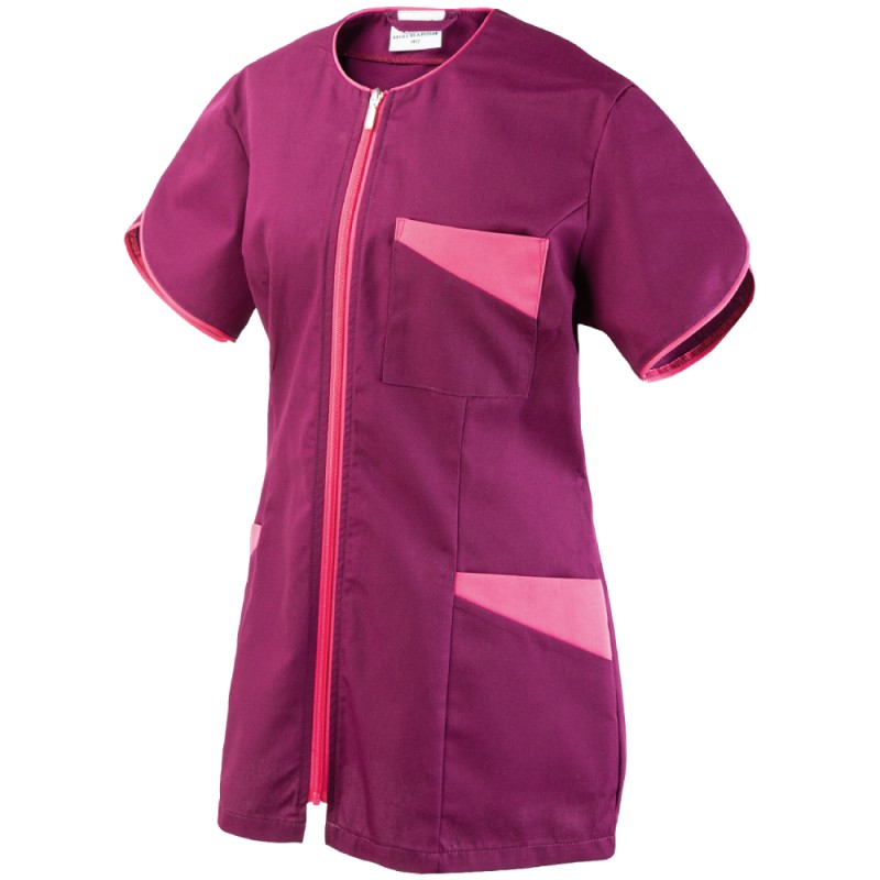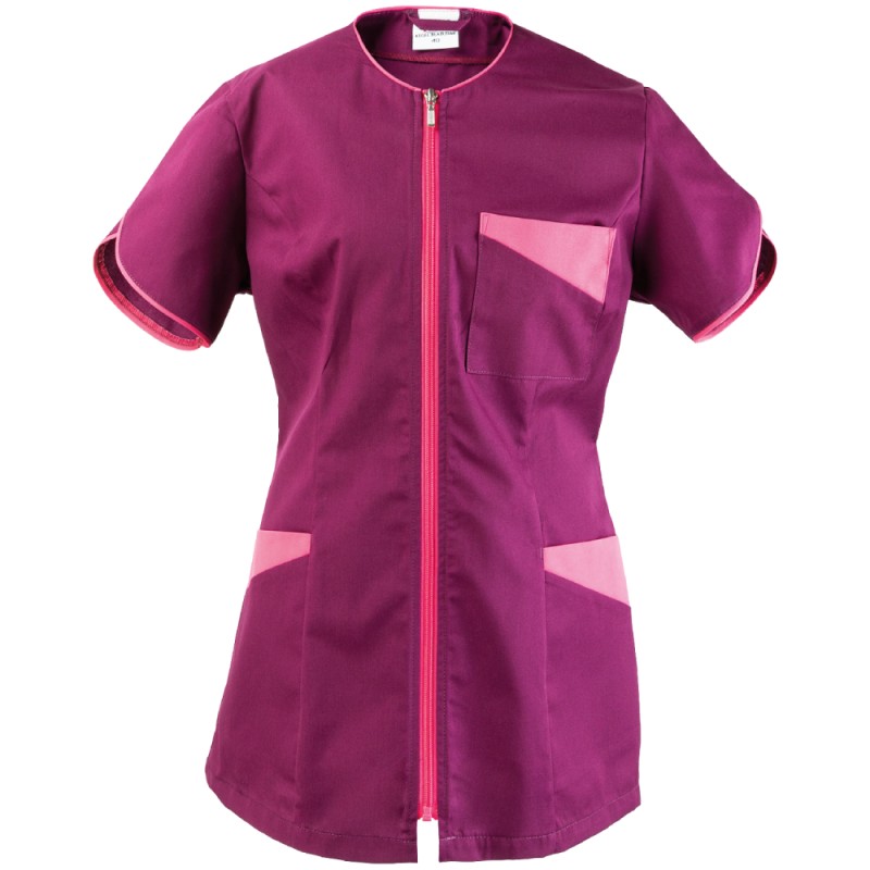 Bluza damska z krótkim rękawem 390A KBT uszyta, zaprojektowana dla pań ceniących sobie niepowtarzalność i modny design. Bluza w kolorze fioletowym podkreślająca swoją wyjątkowość wypustką i obramowaniem dekoltu, kieszeni w kolorze różowym. Tkanina, z której bluza jest uszyta, gwarantuję zachowanie koloru po wielokrotnym praniu, odporność na większe zabrudzenia i wytrzymałość na długie lata. Dodatkowo bluzę wyróżniają cięcia modelujące z przodu doskonale podkreślające sylwetkę i szybkie rozpinanie bluzy na zamek. Bluza doskonale sprawdzi się w większości zawodów. Polecana w branży kosmetycznej, fryzjerskiej czy też w branży czystości.